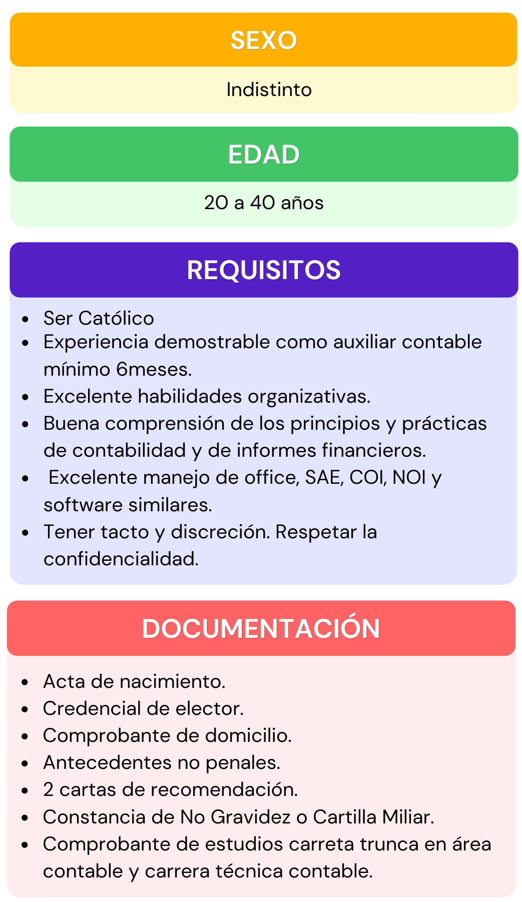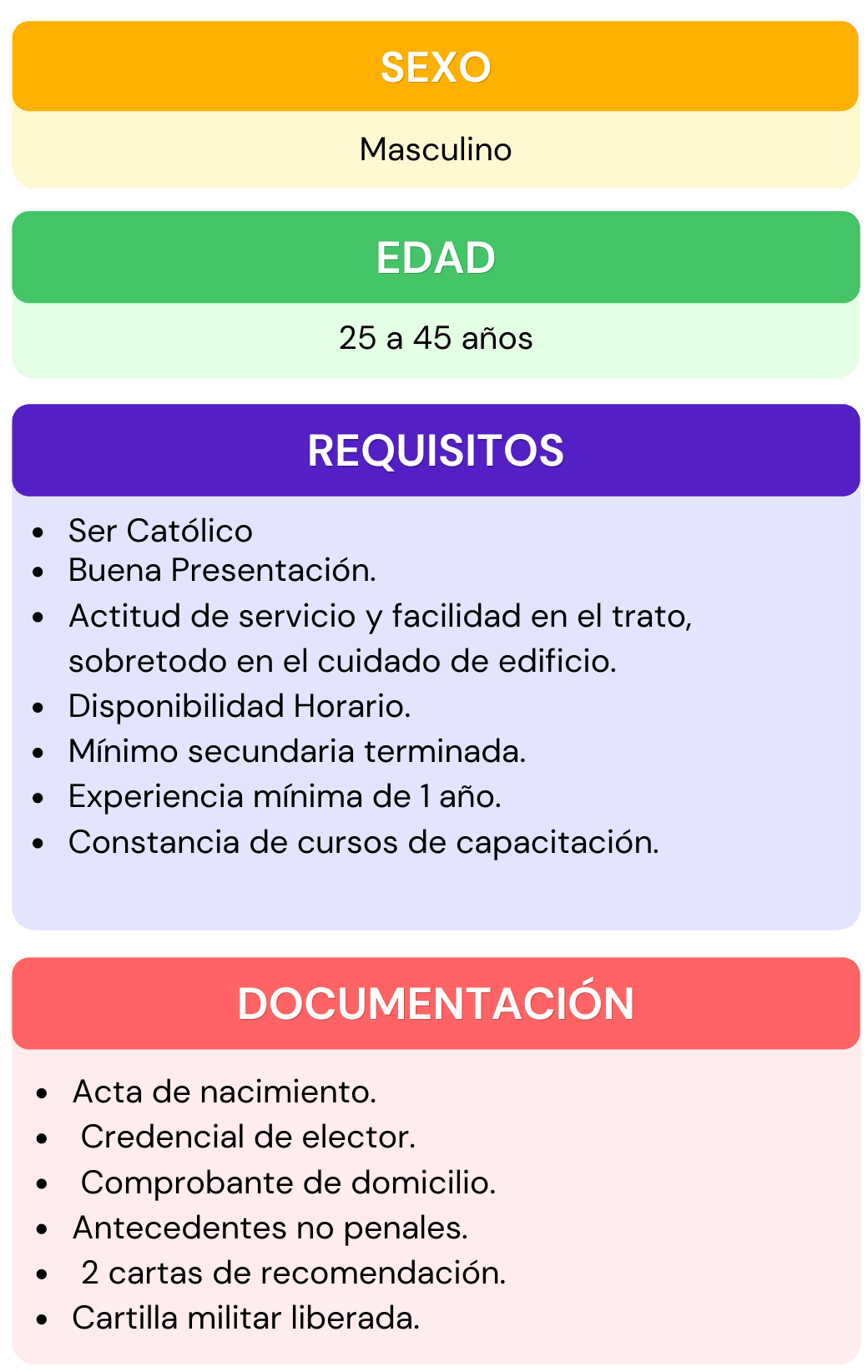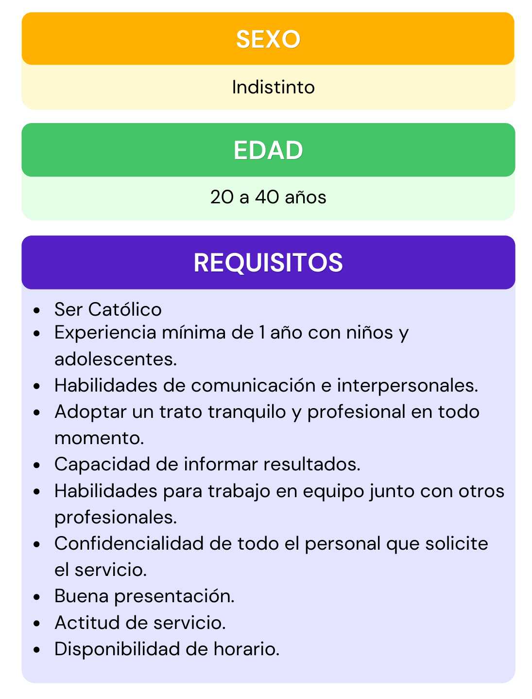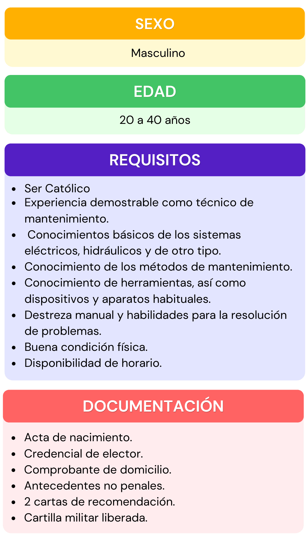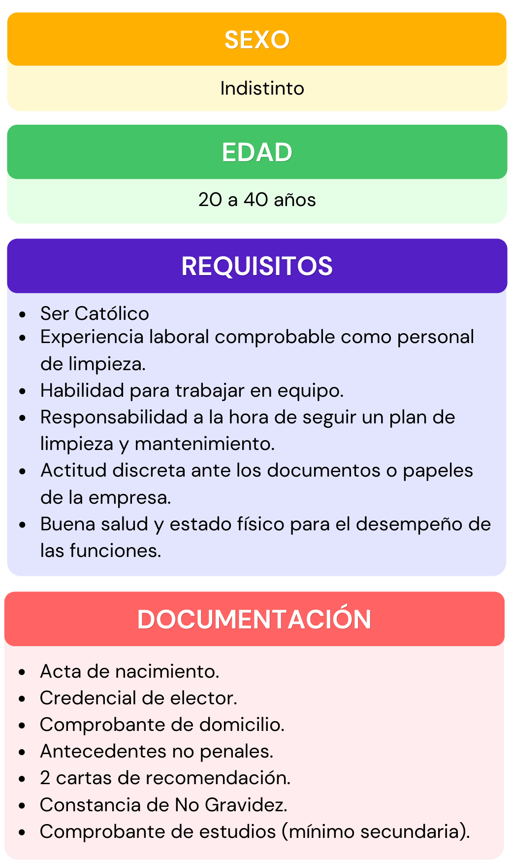 Si deseas formar parte del personal que labora en nuestra institución, selecciona el área de interés para la cual te gustaría aplicar, da click en ver requisitos ahí encontraras todos los requisitos que se ocupan para el puesto seleccionado, después abre el chat que se encuentra en la parte inferior izquierda, escribe el puesto de interés y rellena los datos que se te piden, por ultimo adjunta tu currículum vitae. En caso de contar con alguna vacante nos pondremos en contacto contigo.